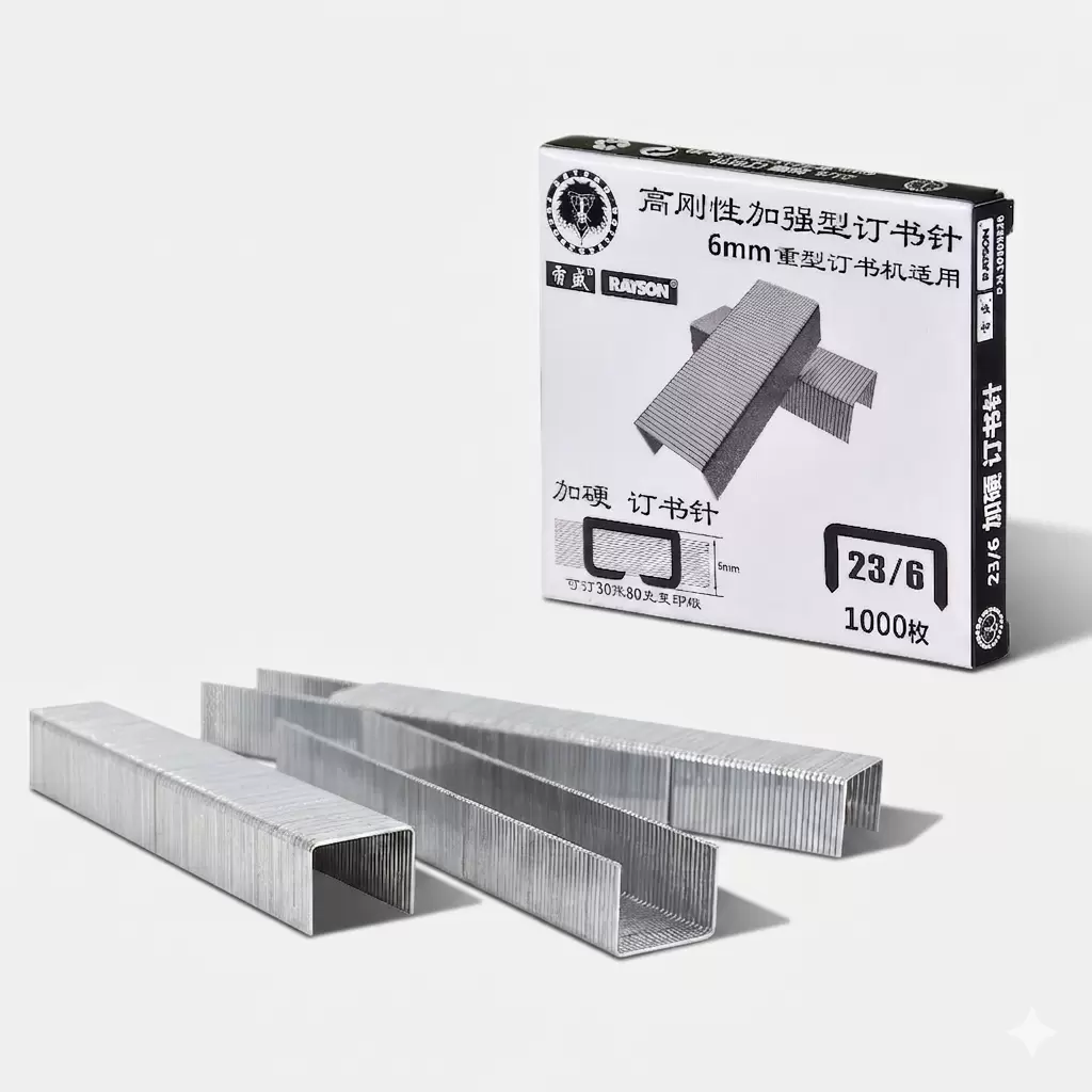 Высококачественные усиленные скобы для мощных степлеров (серия High Rigid) разработаны для надежного скрепления объемных документов и плотных материалов. Использование закаленной стали повышенной жесткости предотвращает сгибание скобы при работе и обеспечивает легкое пробивание стопы бумаги без замятий. Острая заточка ножек минимизирует необходимое усилие при нажатии на степлер. Продукция имеет цинковое покрытие для защиты от коррозии, гарантирующее долговечность и аккуратный вид скрепленных документов. Идеальная геометрическая точность изготовления обеспечивает плавную подачу скоб в механизм степлера и исключает его заклинивание. Данная серия скоб представлена в различных размерах, что позволяет подобрать оптимальный вариант в зависимости от толщины скрепляемой стопы. Скобы размера 23/6 имеют высоту ножки 6 мм и предназначены для сшивания от 2 до примерно 30 листов стандартной офисной бумаги (80 г/м²). Размер 23/8 с высотой ножки 8 мм позволяет скреплять до 50 листов. Для более объемных документов до 70 листов используются скобы размера 23/10 с высотой ножки 10 мм. Все скобы поставляются в экономичных упаковках по 1000 штук и подходят для использования в большинстве моделей мощных канцелярских и типографских степлеров соответствующего типа. Данные характеристики обеспечивают профессиональное качество скрепления как в офисе, так и в домашних условиях.